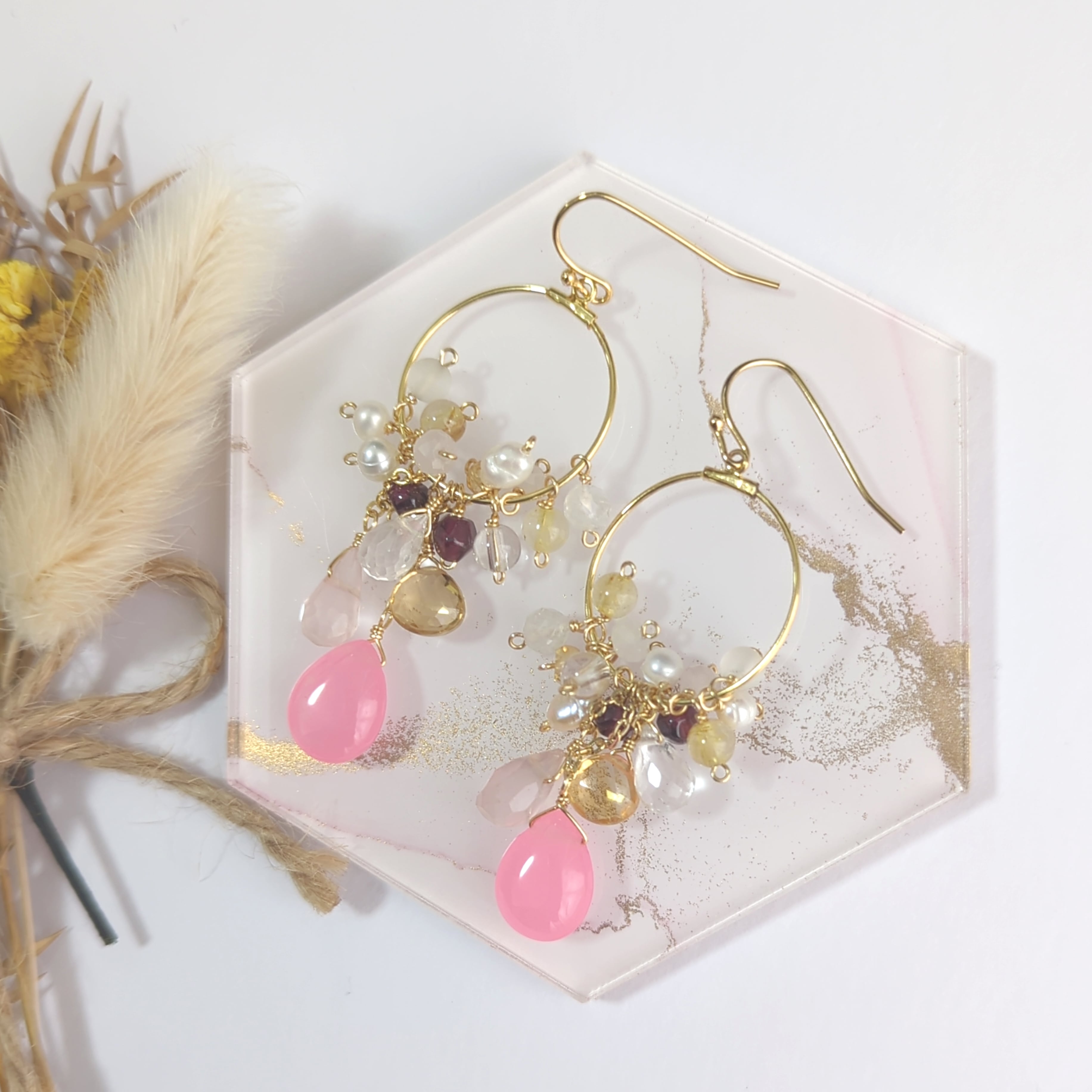 天然石 パワーストーン 効果 天然石ジュエリー 一点物 アクセサリー ジェード ピンクジェード ガーネット ホワイトラブラドライト ローズクォーツ シトリン 淡水パール パール ドロップ 大粒 爽やか 揺れる オフィス カジュアル イヤリング ポストピアス 一点もの ゴールド 金色 キラキラ ハンドメイド 個性的 個性派 普段使い 大人可愛い 大人女子 きれいめ ギフト 贈り物 オールシーズン デート