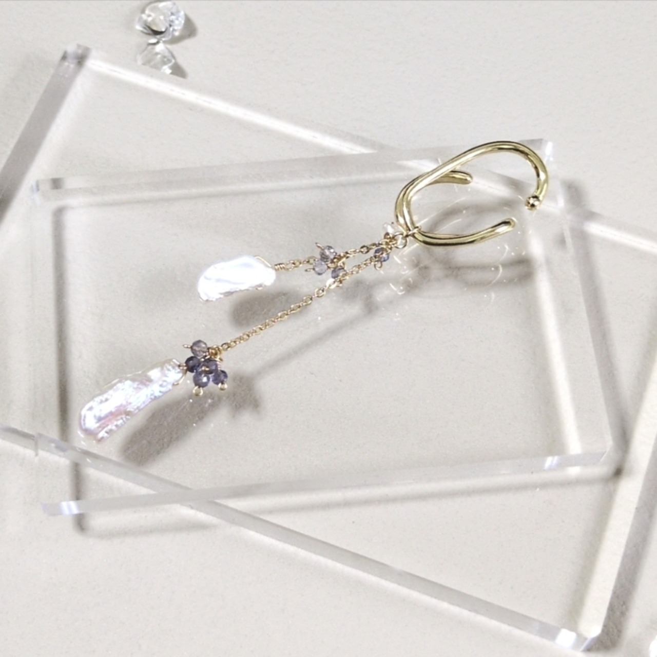 淡水パール パール アイオライト ホワイトラブラドライト 天然石 パワーストーン 効果 天然石ジュエリー 一点物 アクセサリー イヤーカフ 一点もの ゴールド 金色 キラキラ ハンドメイド 個性的 個性派 普段使い 大人可愛い 大人 女子 女子力 きれいめ かわいい 可愛い オールシーズン 春 夏 秋 冬 デート