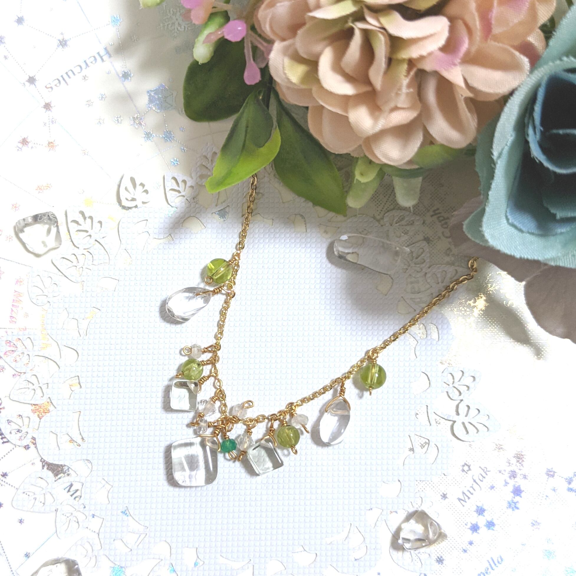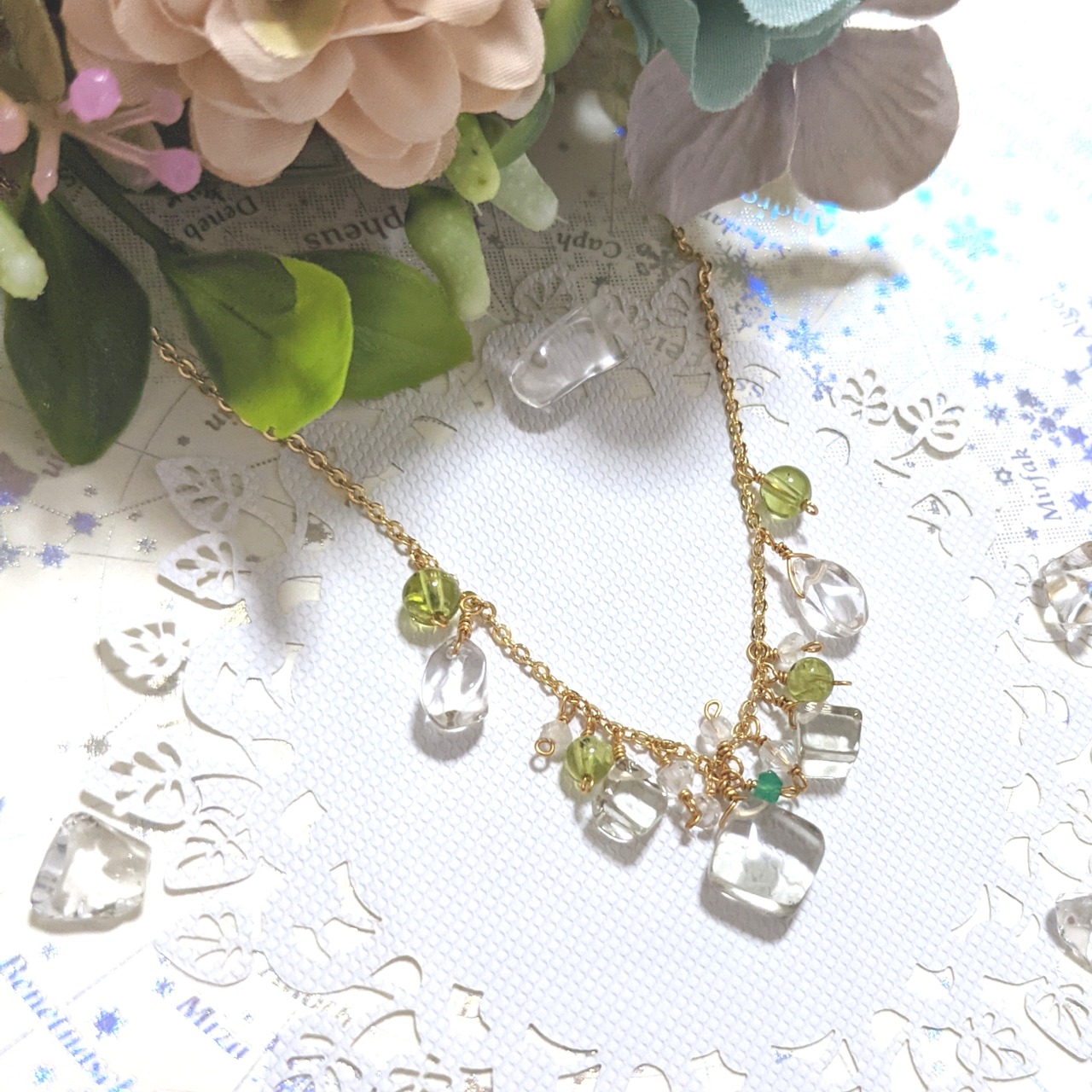 グリーンアメジストとペリドットのシャンデリア風のネックレス