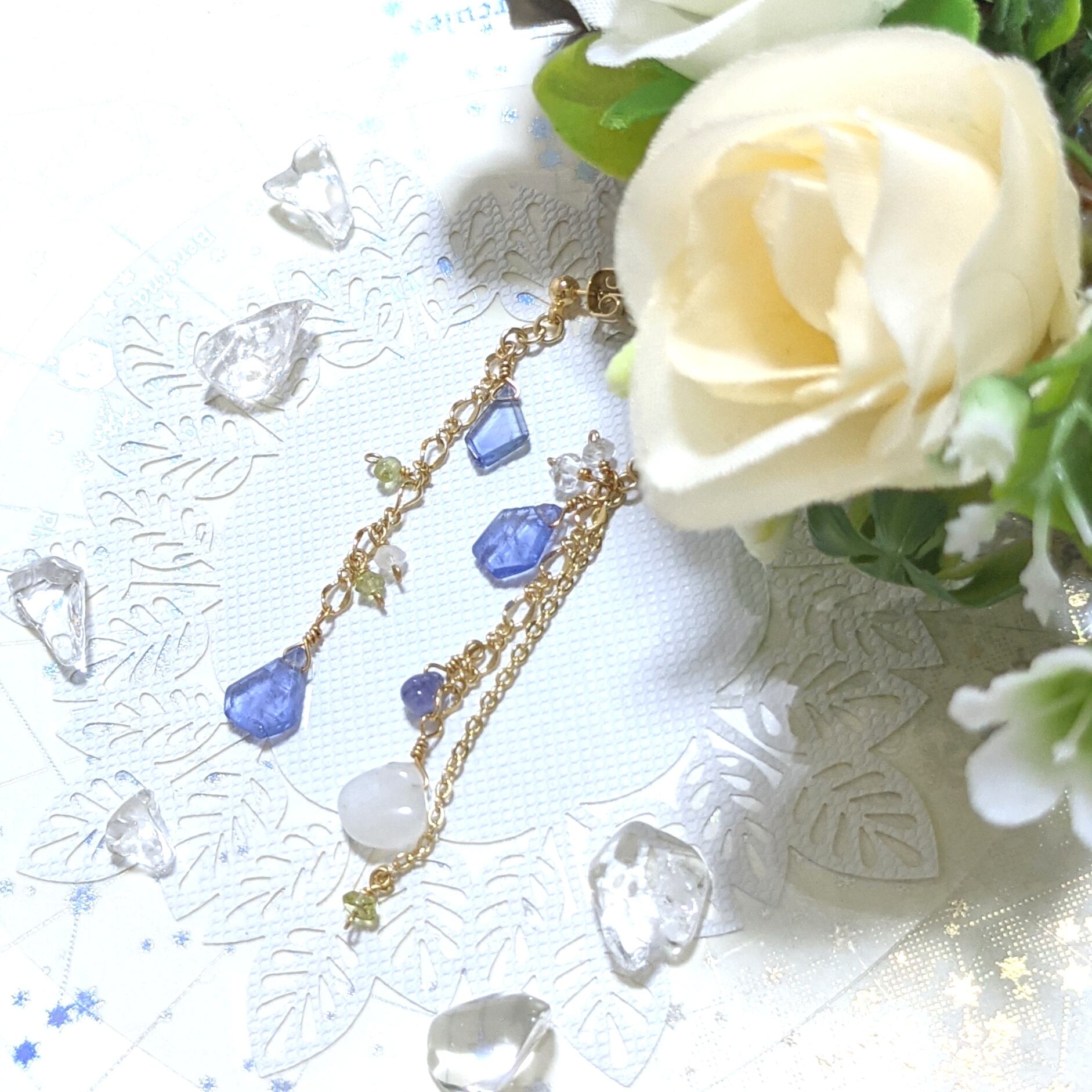 そんなタンザナイトを周りで彩るペリドットとホワイトラブラドライトの美しさもまた魅力的✩.*˚