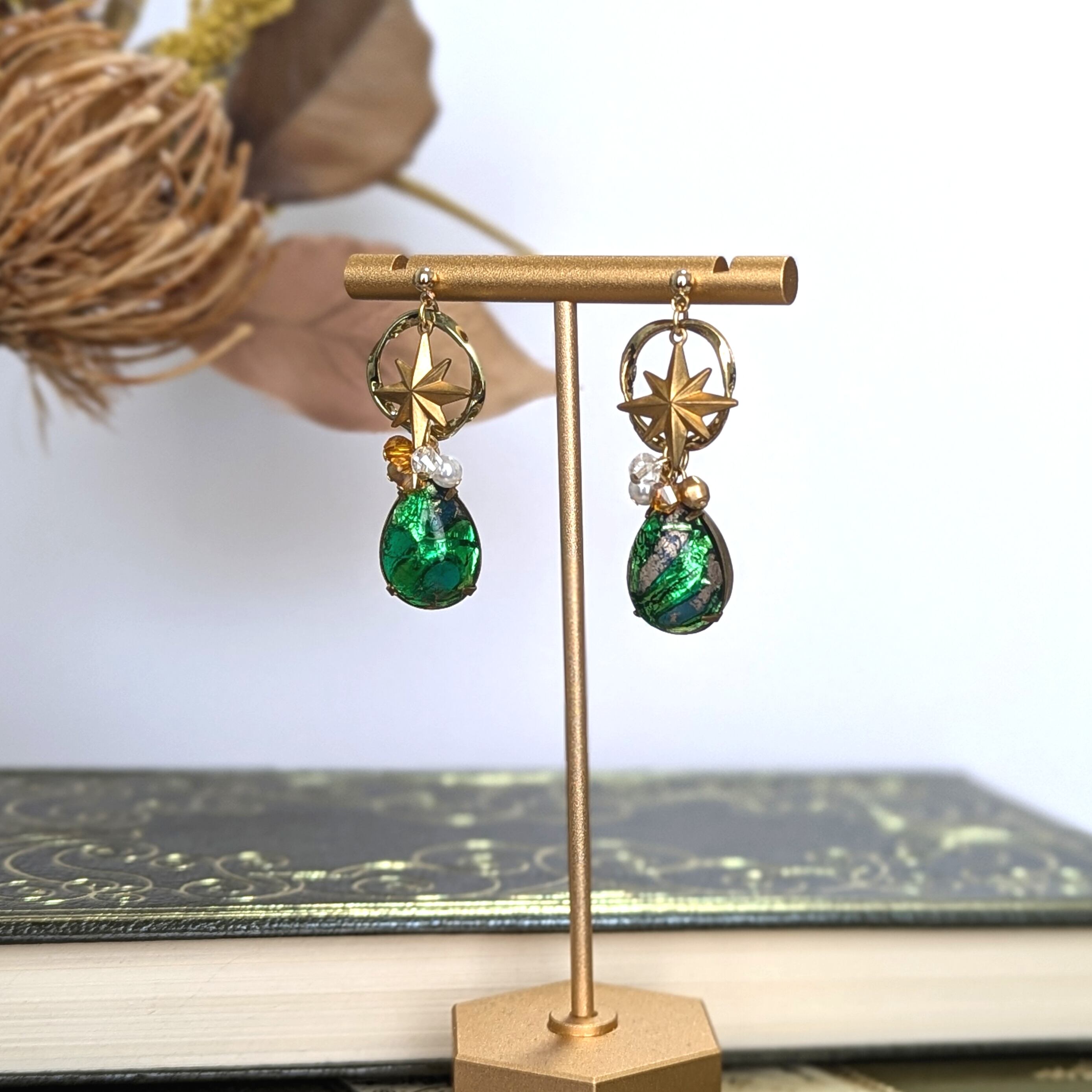 そんな珍しいヴィンテージカボションが輝くようによりそうのは、ヴィンテージのブライトスターチャーム。