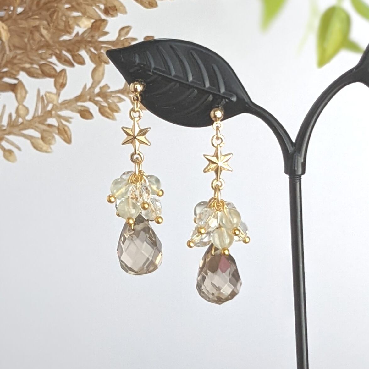 スモーキークォーツが大人の雰囲気漂わせる耳飾り