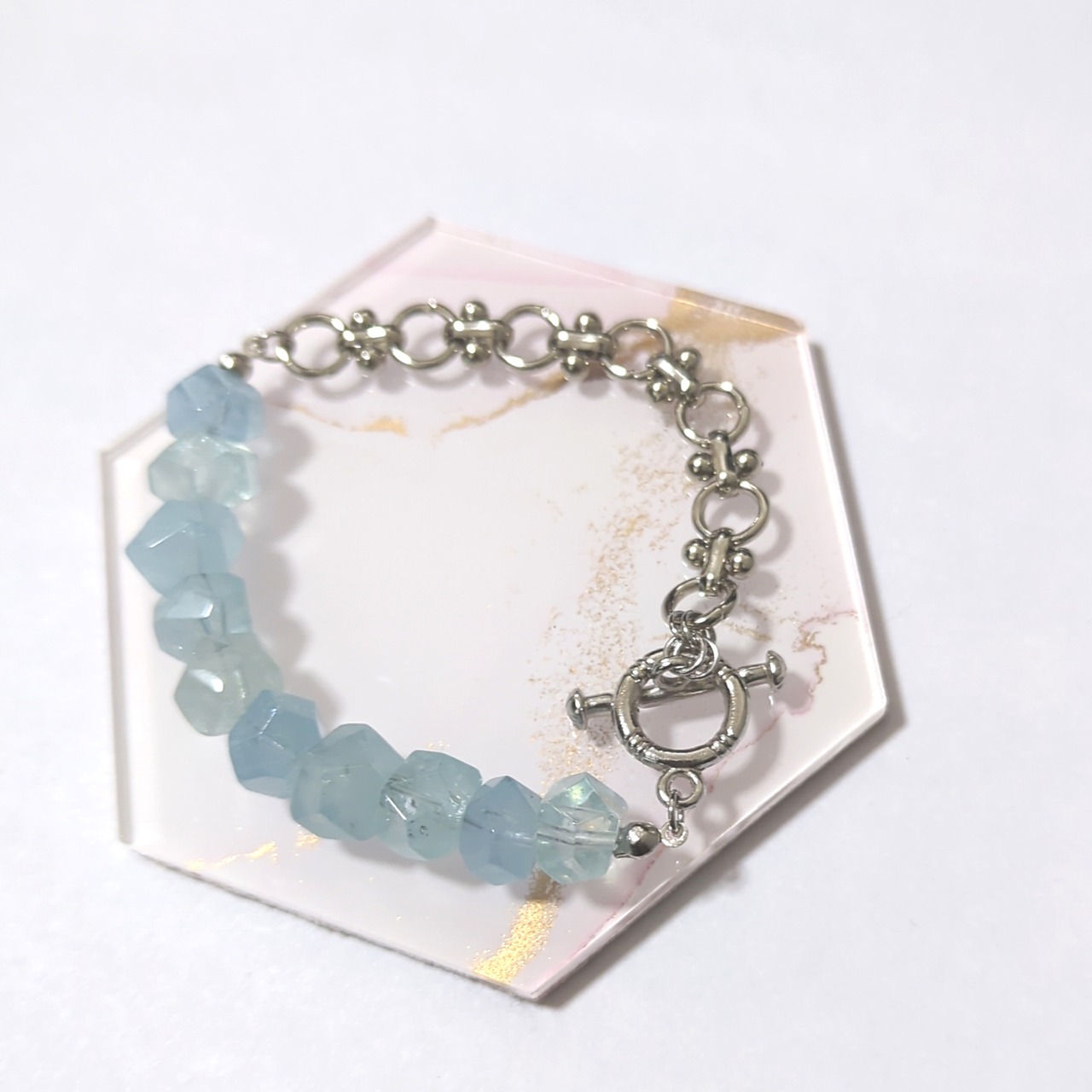 【検索ワード】アクアマリン 水色 氷 夏 天然石 ブレスレット アシメデザイン アシメ アシンメトリー チェーン オフィス カジュアル 一点もの シルバー 銀 銀色 キラキラ ハンドメイド 個性的 個性派 普段使い 大人可愛い 大人 女子 女子力 きれいめ かわいい 可愛い ギフト 贈り物 オールシーズン デート