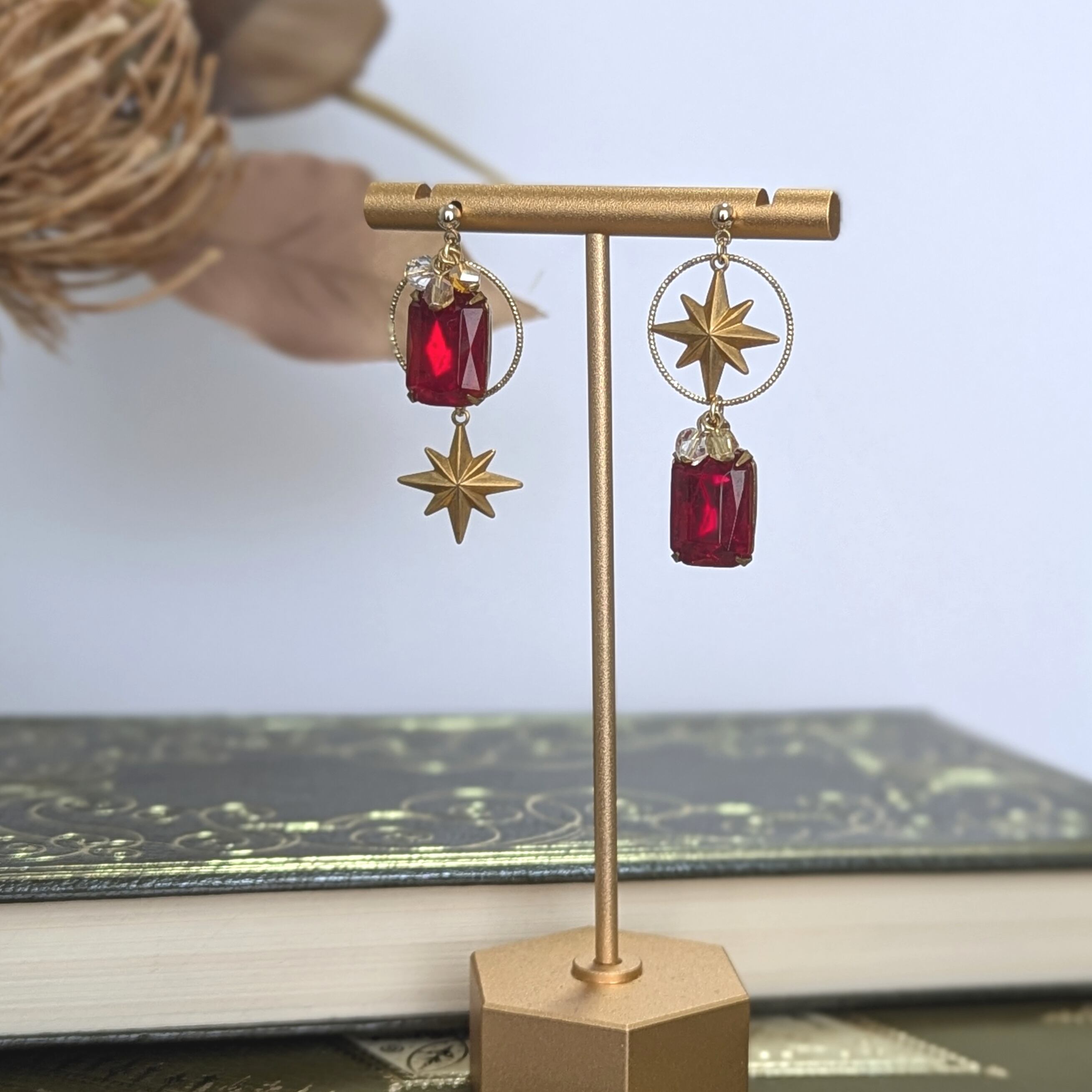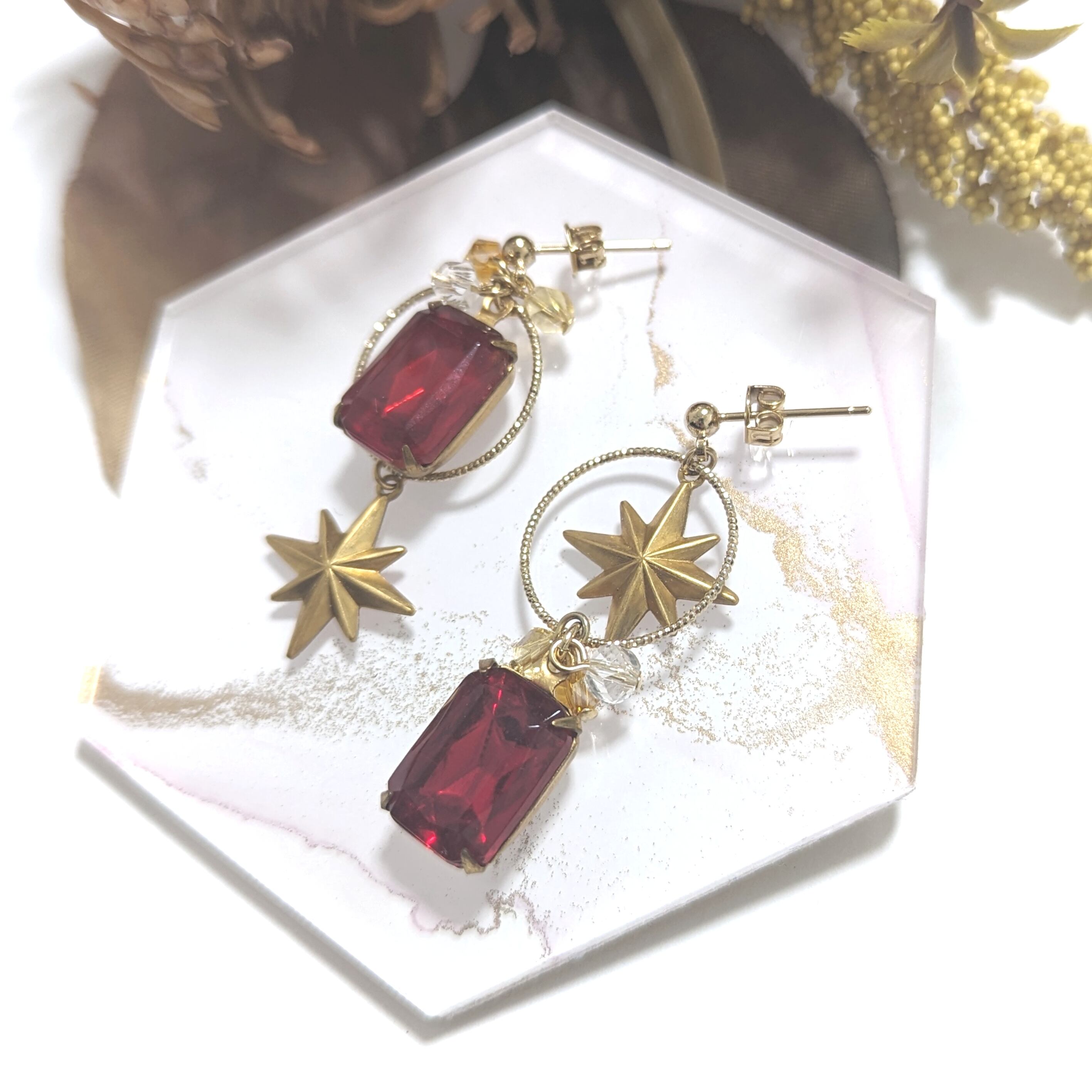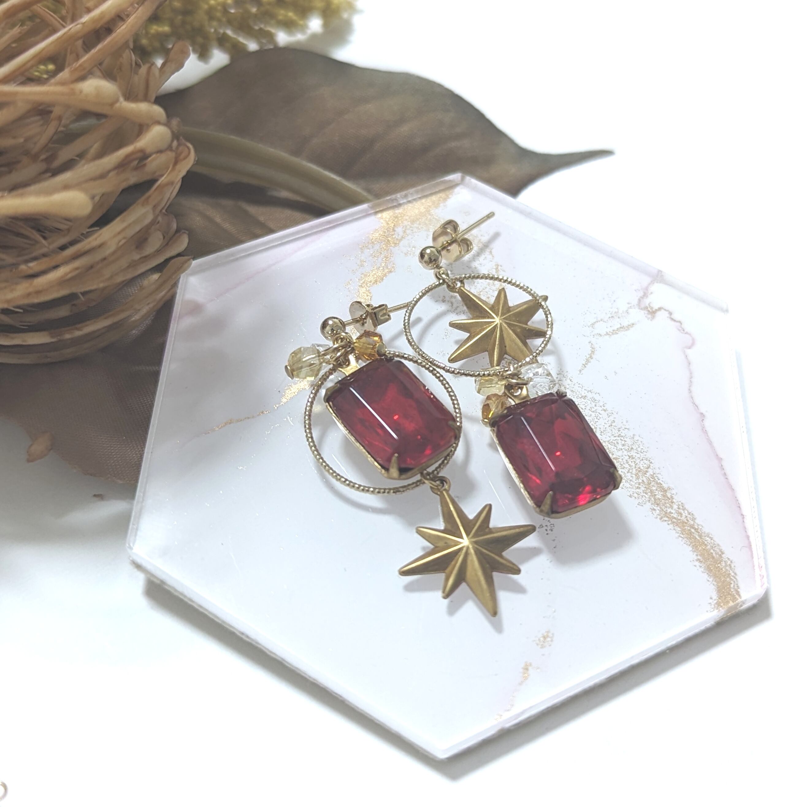ヴィンテージ ヴィンテージスワロ スワロ スワロフスキー 赤 レッド 一点物 アクセサリー アシメ アシンメトリー オフィス カジュアル イヤリング ポストピアス フックピアス ノンホールピアス 花 フラワー 一点もの ゴールド 金色 キラキラ ハンドメイド 個性的 個性派 普段使い 大人可愛い 大人 女子 女子力 きれいめ かわいい 可愛い オールシーズン 春 夏 秋 冬 デート