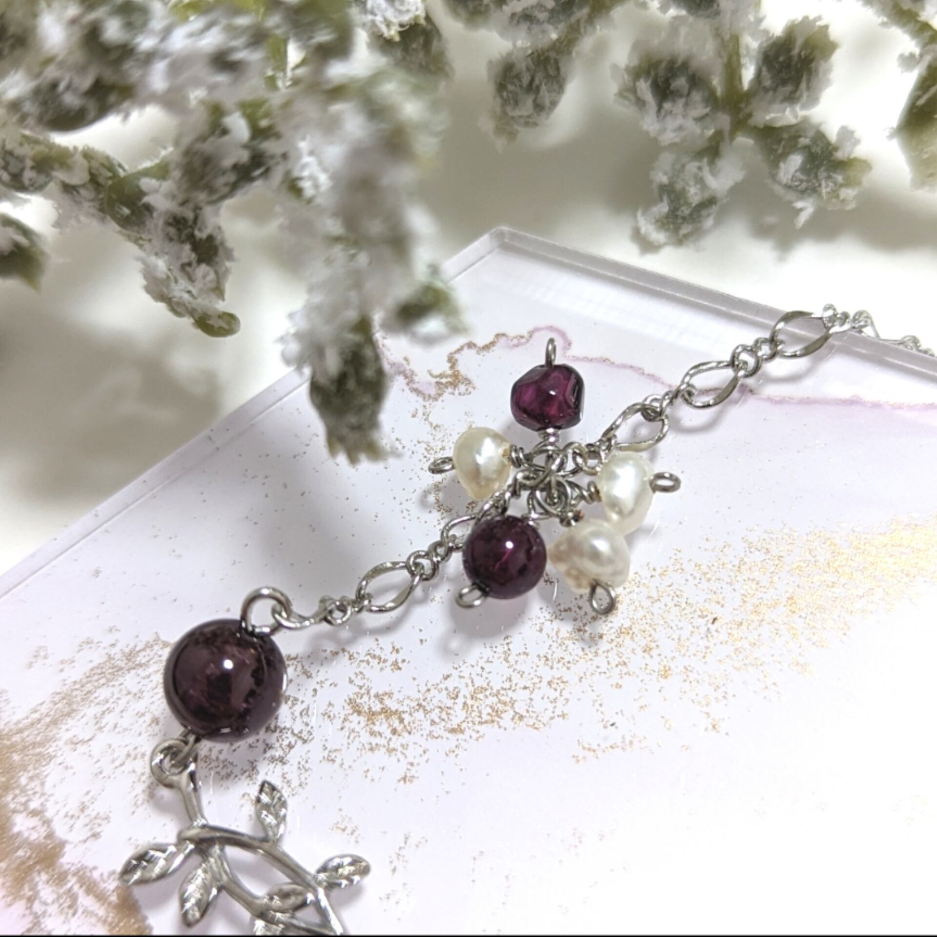 【検索ワード】ガーネット 淡水パール パール 水晶 クリスタル リーフ 葉っぱ シルバー 天然石 ブレスレット アシメ アシンメトリー オフィス カジュアル 一点もの シルバー 銀 キラキラ ハンドメイド 個性的 個性派 普段使い 大人可愛い 大人 女子 女子力 きれいめ かわいい 可愛い ギフト 贈り物 オールシーズン デート