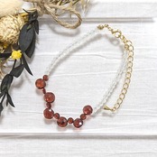 こちらに使用したマロンカットとコインカットガーネットは透明度も高く、交互に組み合わせることでとても個性的なシルエットに。