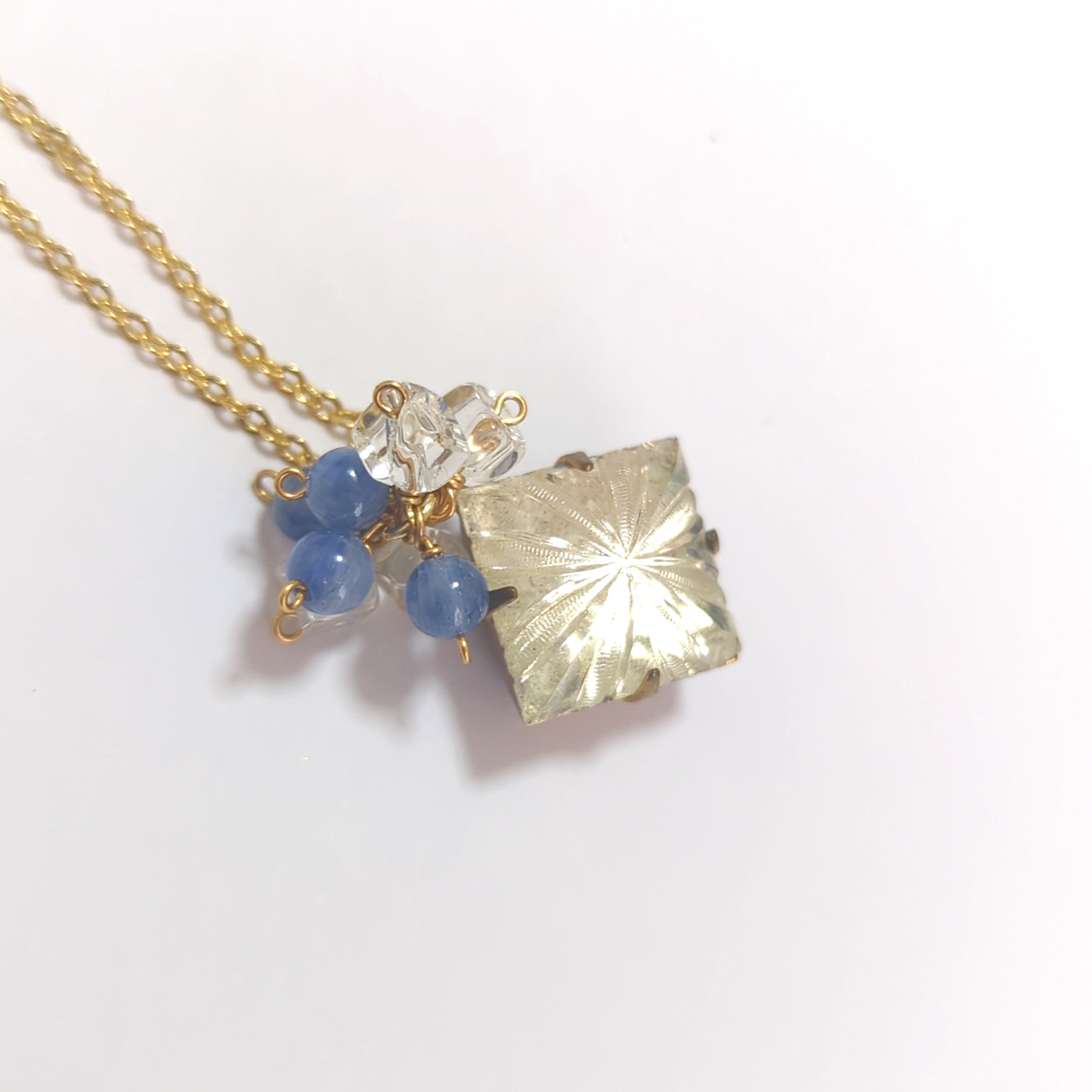 スクエアラフカットのスモーキークォーツとカイヤナイトを合わせて個性的かつ大人っぽいデザインとなりました。