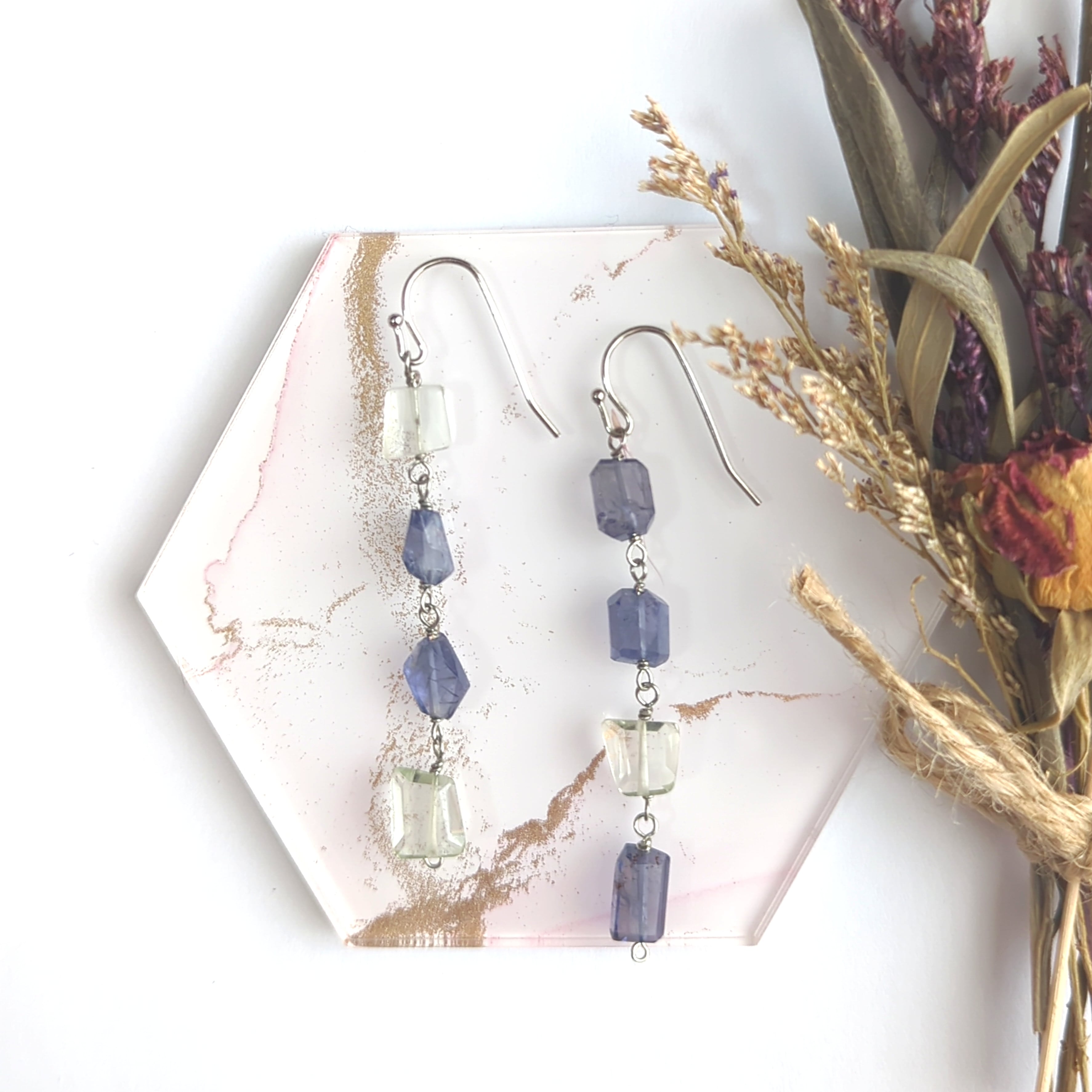 天然石 パワーストーン アイオライト 紫 グリーンアメジスト 緑 レア 効果 天然石ジュエリー 一点物 アクセサリー アシメ アシンメトリー オフィス カジュアル イヤリング ポストピアス フックピアス 一点もの ゴールド 金色 キラキラ ハンドメイド 個性的 個性派 普段使い 大人可愛い 大人 女子 女子力 きれいめ かわいい 可愛い オールシーズン 春 夏 秋 冬 デート
