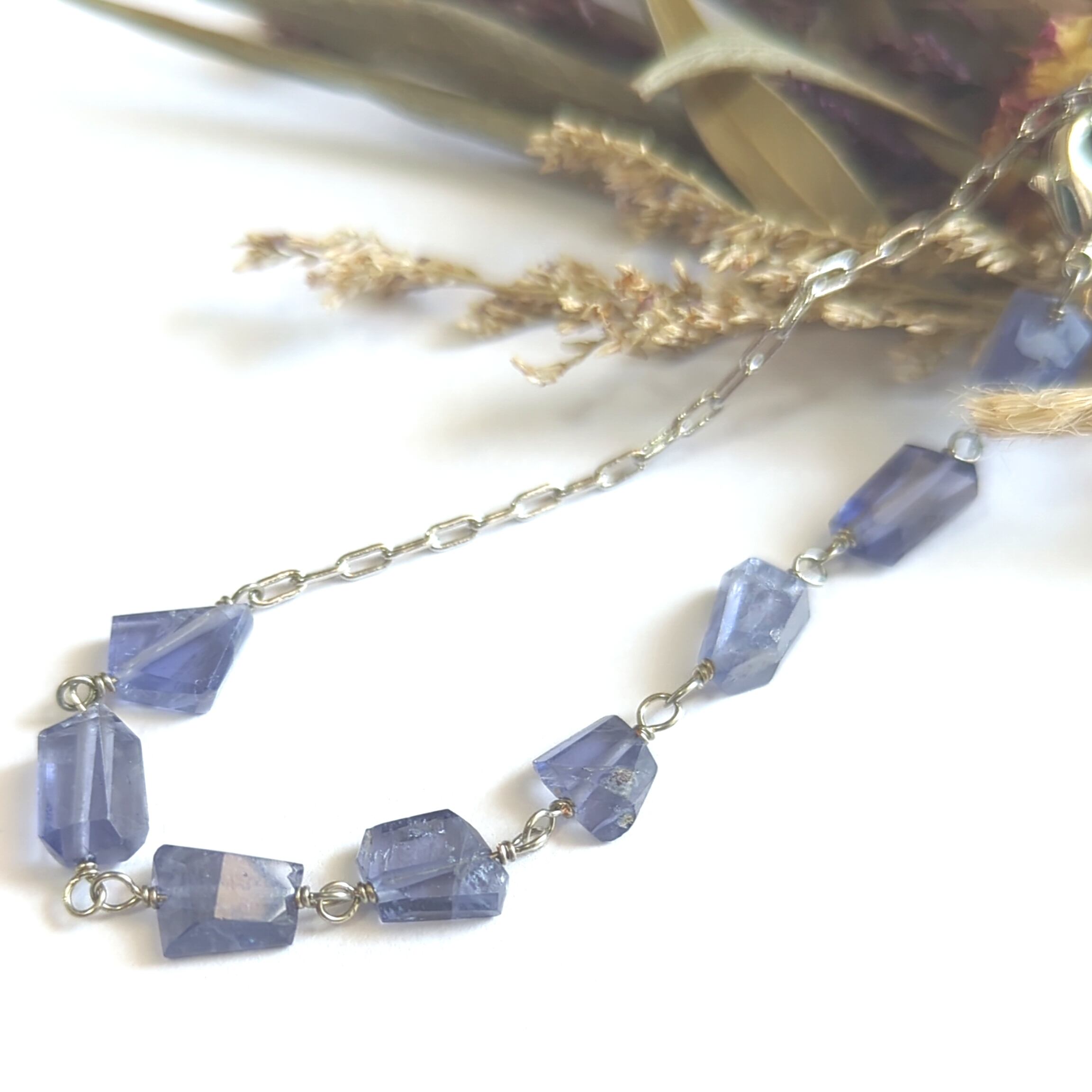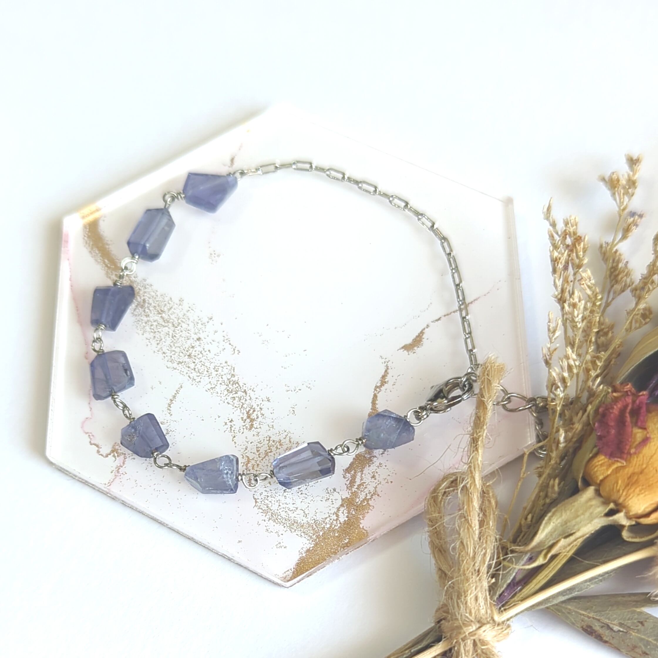 アイオライトとグリーンアメジストのラフタンブルブレスレット