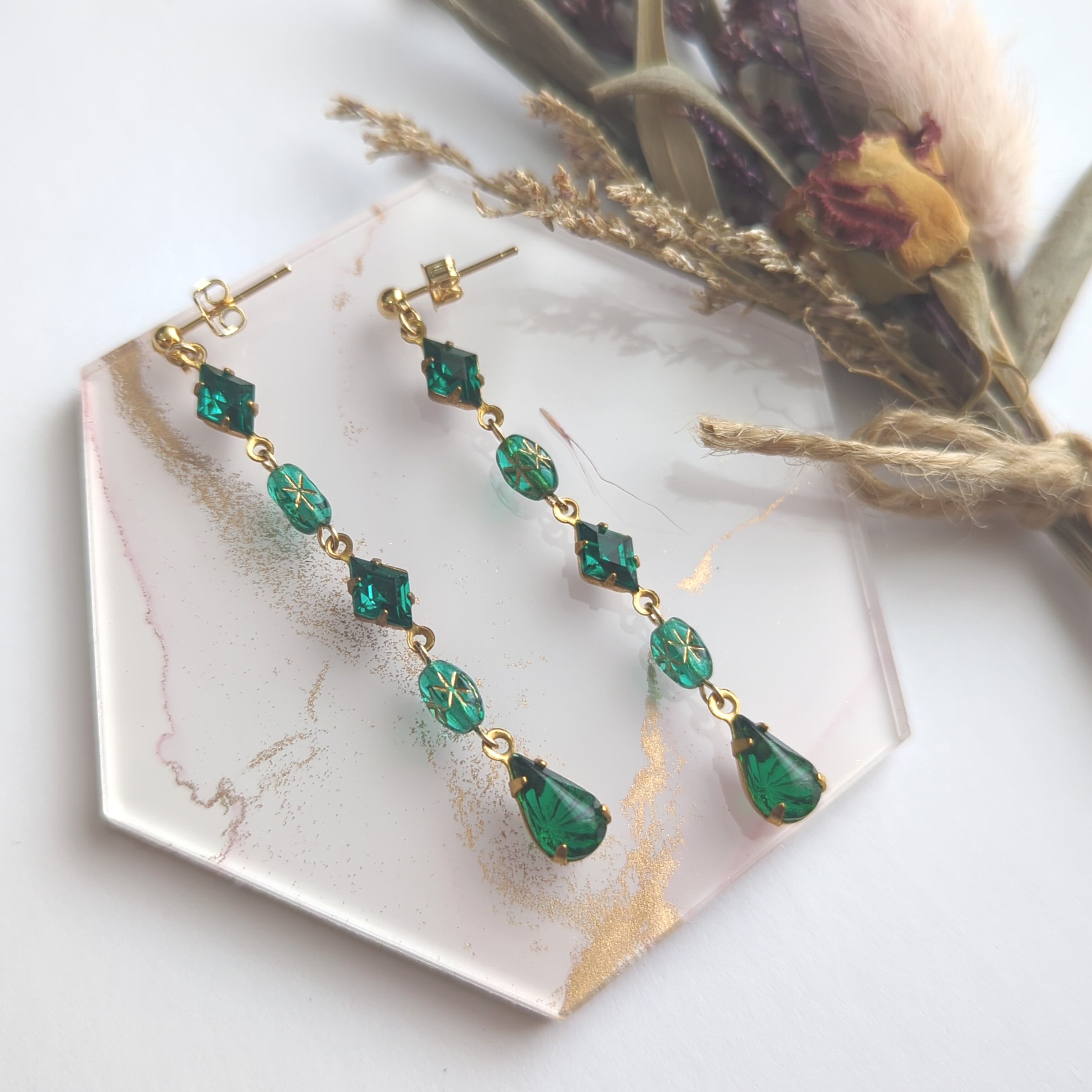 ひし形カットにされたグリーンのヴィンテージスワロは小粒ながら奥行のあるようなカットが施されております。