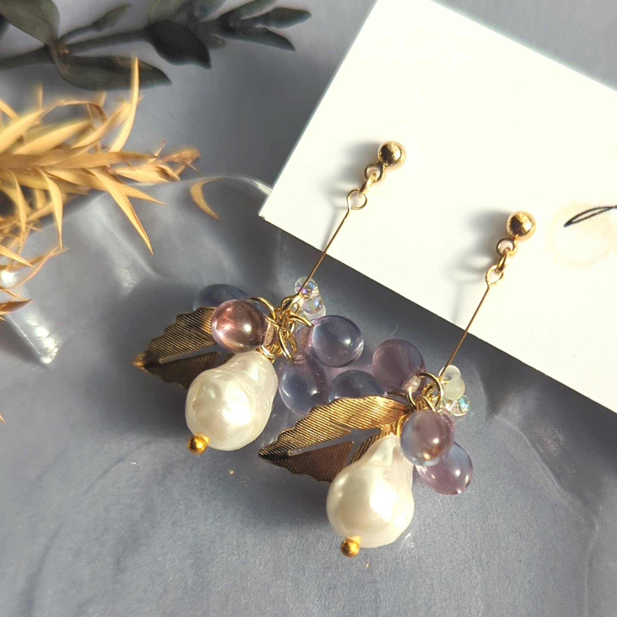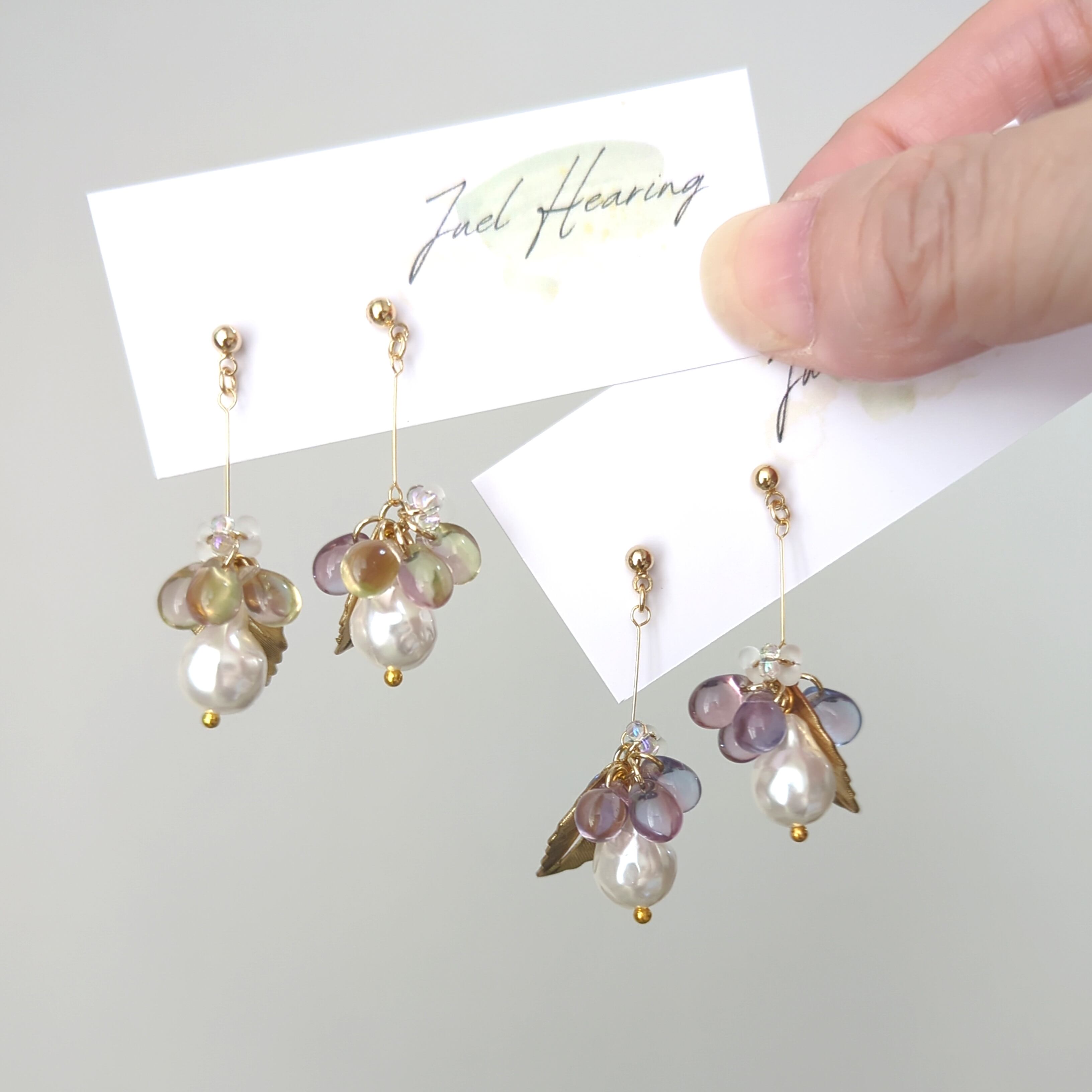 リーフチャームを組み合わせることで、ブドウのような可愛らしいピアスになりました。